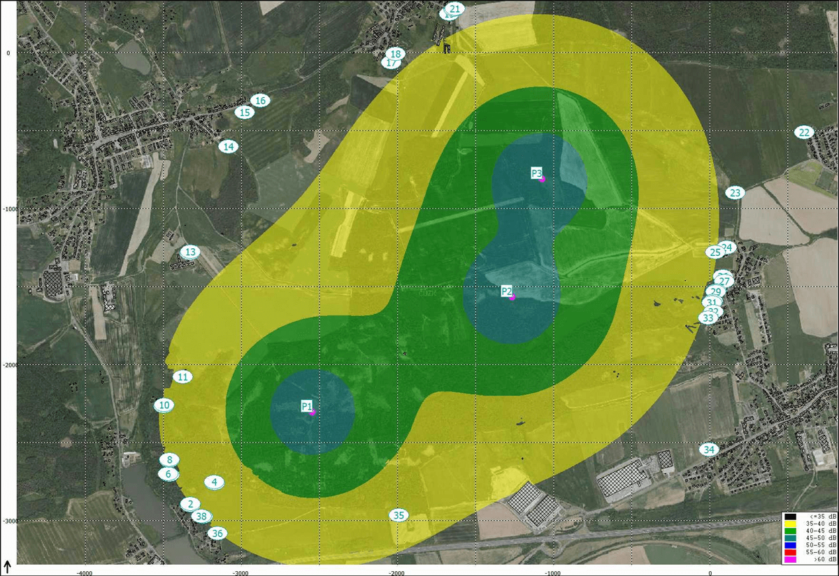 Hluková studie, která bude nezávislým odborníkem prezentována na veřejným projednáním ve Zbirohu dne 29. 1. 2025. Výpočtové hodnoty hluku pro referenční body je možné zobrazit zde.